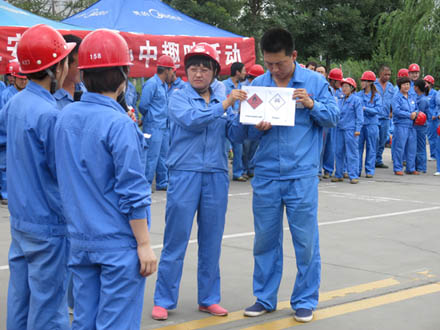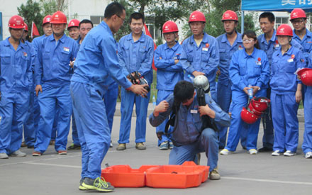2013年7月17日下午,為增強員工安全意識、豐富業余文化生活,促進安全生產和諧,化工公司根據“安全生產月”活動方案舉辦了“安全在我心中”趣味運動會。本次趣味運動會結合安全常識、應急技能和興趣娛樂為一體,設立了“安全標志辯識、綁腿三人安全行、聯保互保你我行、火場救人、空呼器組裝搬運大比拼和齊心協力”六大項目,共有80余名員工參加了此次運動會。