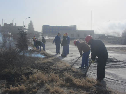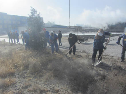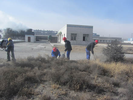 天氣漸冷,為了消除安全隱患,2013年11月26日下午,實業部組織機關部室及分廠人員在一期循環水東綠化帶開展了義務勞動活動,大家不畏嚴寒將雜草焚燒、清理、深埋,并平整了凸凹不平處,經過幾個小時的共同努力,綠化帶中的垃圾被徹底清理干凈。