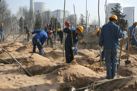 3月26日,公司黨委按照全年工作計劃,在供銷中心辦公樓周圍開展了植樹綠化活動,共有來自實業部、發電事業部、供銷中心、后勤服務中心及公司本部的350名黨員、職工參加了本次活動,共種植楊樹2420棵。為了組織好本次植樹活動,黨群工作部提前下發了通知,并召集成員企業綜合部負責人召開了協調會,劃分了各自的責任區,后勤服務中心也提前訂購了樹苗并安排鉤機挖好了樹坑,為活動做好了準備工作。