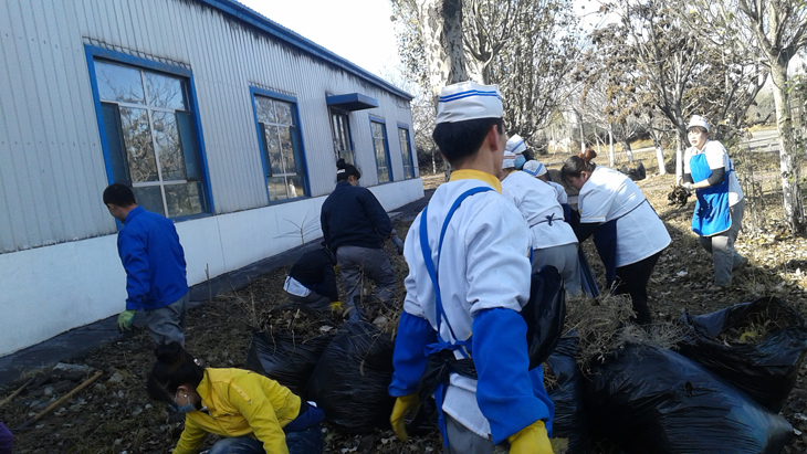 10月31日,為排除安全隱患,美化環境,后勤服務中心組織實業部食堂全體員工利用午休時間清除了食堂周圍的雜草。