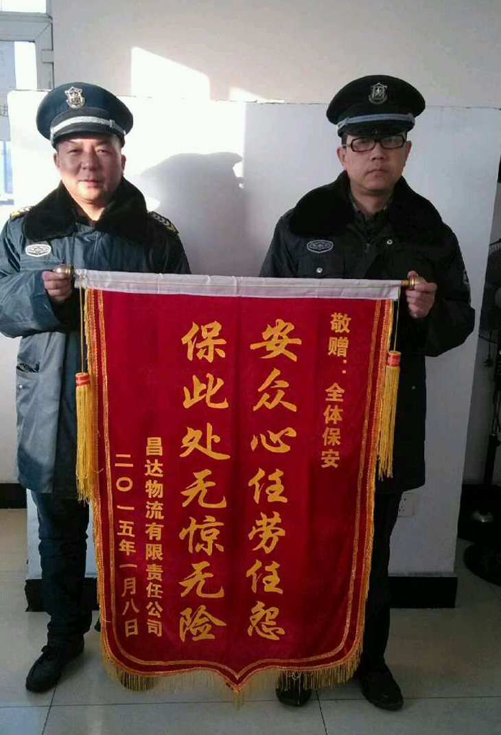 1月7日2:00,后勤服務中心安保部烏達區域保衛人員王春雷、成向東在巡查化工廠區時,發現水泥分廠原煤擋風墻北側有兩個大貨車輪胎,因輪胎距離廠區圍墻較近,且存放位置較為隱蔽,故懷疑有被盜嫌疑,隨即巡查人員在僻靜處蹲守。經過一個小時的查看,沒有發現可疑跡象,但為防止輪胎丟失,巡查人員前往水泥分廠辦公樓找到值班人員協調鏟車將輪胎運送到保衛執勤點暫時保管。1月8日上午,經核實確定,此輪胎屬于烏達化工外雇施工單位昌達物流有限公司所有,遂第一時間內將輪胎歸還。昌達物流公司為表示感謝,特將一面寫著“安眾心任勞任怨、保此處無驚無險”的錦旗送到后勤服務中心保衛人員手中,對他們認真負責的工作態度給予了肯定和贊揚。