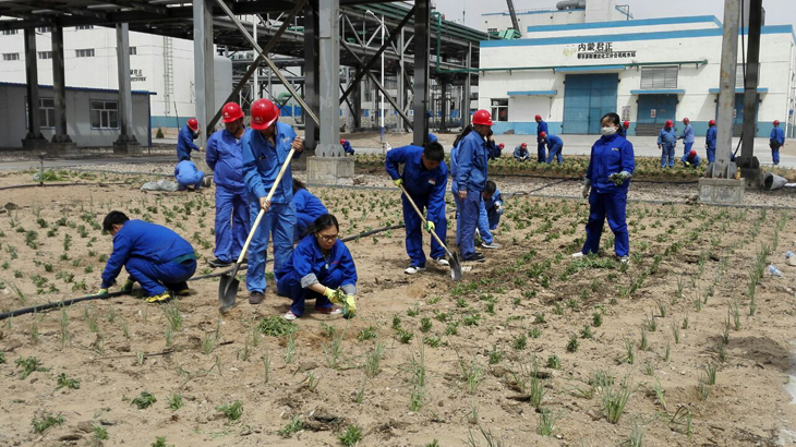 春風送暖,萬物復蘇。5月7日,蒙西化工組織30余名行政人員在規劃區域開展了義務勞動,常務副總經理崔增平、副總經理王建華親自帶領大家揮鍬整地、挖坑植苗,盡管大家滿頭大汗,但每個人的嘴角都掛著笑容。