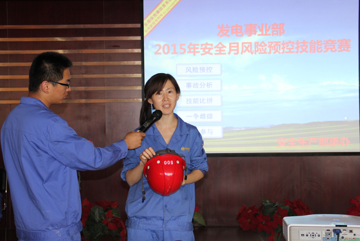 本次比賽由運行一隊、二隊、檢修爐煤、電氣隊及熱工隊等共八支代表隊參加,競賽分為風險預控、事故分析及技能比拼三個環節,每一環節結束后進行一輪“全員參與”即觀眾題,如最終比分相同進入“一爭雌雄”環節,競賽題目新穎、題型變化多樣,選題方式采用隨機選題。最值得一提的是,在競賽中間穿插了正確著裝、安全帶正確使用、安全帽正確佩戴、安全員介紹安全檢查經驗及事故當事人講述事故教訓和感悟等節目,不僅豐富了競賽內容,而且提高了員工對各類風險的辨識能力。會場氣氛十分活躍,競爭異常激烈,各參賽選手的精彩回答贏得陣陣掌聲和歡笑聲。在三個環節后,檢修爐煤代表隊獲得第一名,電氣代表隊、熱工代表隊比分相同,均位居第二,最后通過緊張的加賽搶答環節決出了第二、第三名。