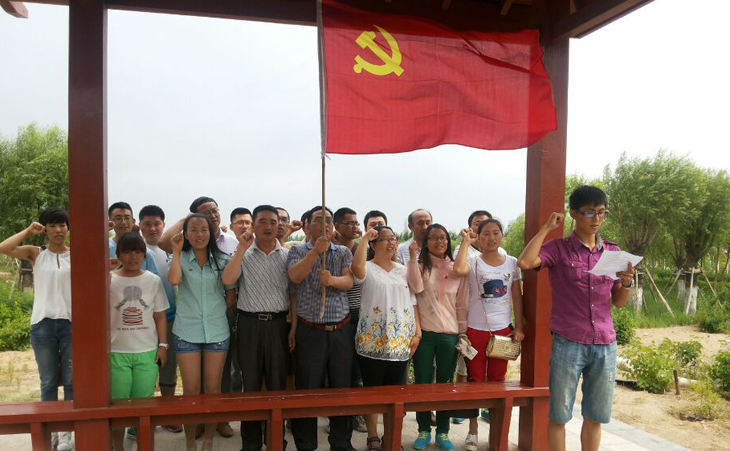 清晨,大家乘車到烏海葡萄主題公園參觀并進行了黨員宣誓儀式,蒙西冶煉公司黨支部書記張景祥、實業部黨支部書記閆軍分別帶領全體黨員重溫入黨誓詞,高亢激昂的誓言聲久久回蕩在空中。隨后,在楊三農莊召開了簡短的黨員座談會,各位黨員暢所欲言,通過回顧上半年的黨務工作,暢談了黨的執政能力,提高了對黨的更深層認識。支部書記鼓勵入黨積極分子努力工作,要以共產黨員的標準,嚴格要求自己,積極靠近黨組織,接受黨組織的考驗,爭取早日加入黨組織。午飯后,大家自由分組進行集體游戲環節,齊心協力默契配合,努力為自己的團隊爭取榮耀。