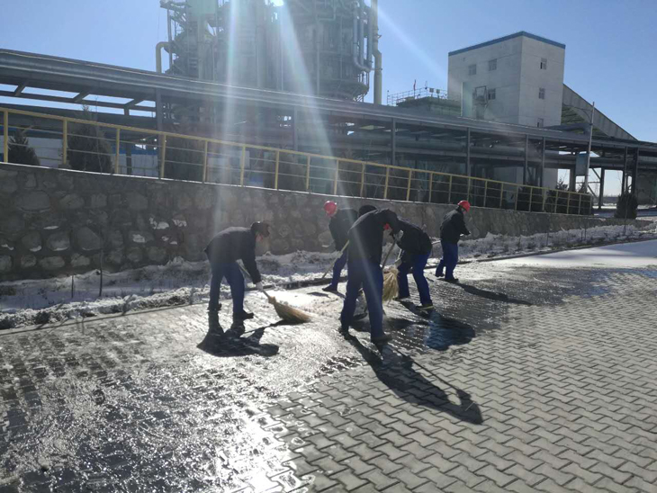 春節期間一場大雪的到來,為整個廠區披上了一層厚厚的銀裝,也給人員和車輛的正常通行造成了影響。2月15日,蒙西冶煉公司組織職能部室11人,清掃了行政辦公區的積雪,大家利用木板推、用鍬鏟、用掃帚掃,最后伴隨“加油聲”和金屬碰撞聲,地面的積雪被清理干凈,使辦公區充滿了家的溫馨和春天的暖意。