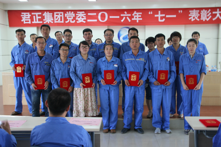 為紀念中國共產黨建黨95周年,表彰公司近一年來涌現出的先進黨組織和個人,做好新黨員發展工作,全面鋪開“兩學一做”工作,7月1日,在雄壯的國歌聲中,公司黨委2016年“七一”表彰大會在烏達化工四樓會議室隆重召開,公司黨委委員、黨委副書記齊玉明,人力資源部總經理關霞,黨委委員、供銷中心黨支部書記劉玲及各總支、直屬支部負責人和80余名黨員代表參加了會議,會議由公司黨委委員、黨群工作部部長郭文宇主持。