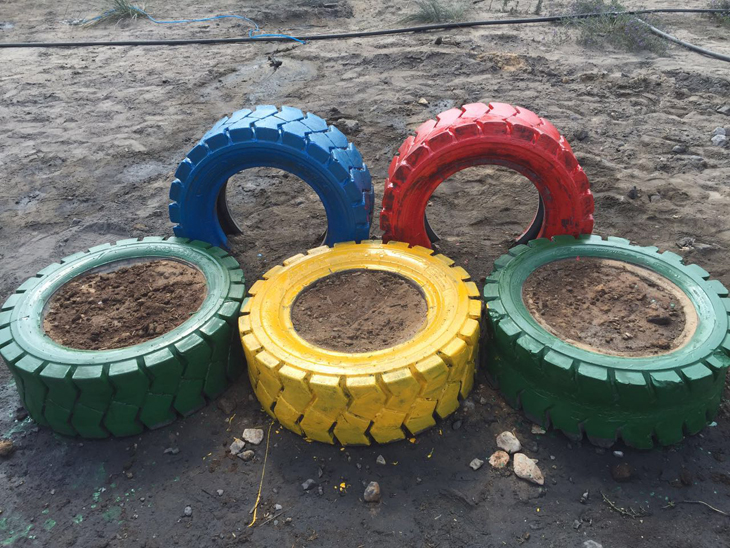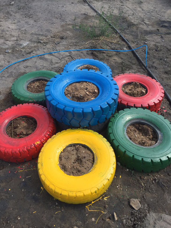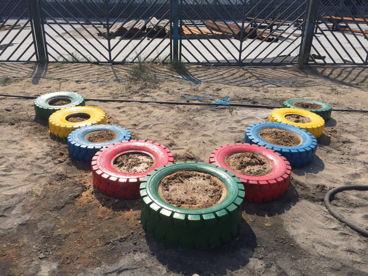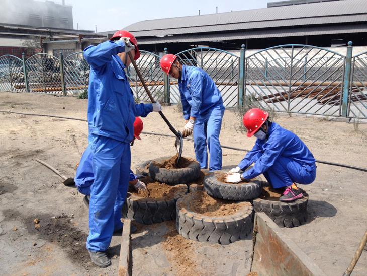 勞動現場做好分工后,大家立即投入到各自的工作中忙得不亦樂乎。因粉塵較大,廠區南北主干道上的宣傳牌上都已蒙上一層塵土,經過大家精心擦拭,它們露出了本來的真面目,給人煥然一新的感覺。而在機動班對面的空地上,人們利用廢舊輪胎搭建成各種造型,并用含有機肥的沙土填滿其中用水澆灌滲透,隨后用水管、抹布將輪胎沖洗、擦拭干凈,用油漆將其粉刷一新。待輪胎中的沙土培好后,將在其中種植花草。相信有了陽光、汗水的照耀和“澆灌”,過不了幾天,這里將是另外一番美麗的“新天地”。