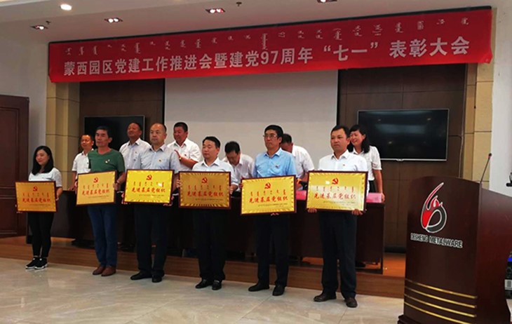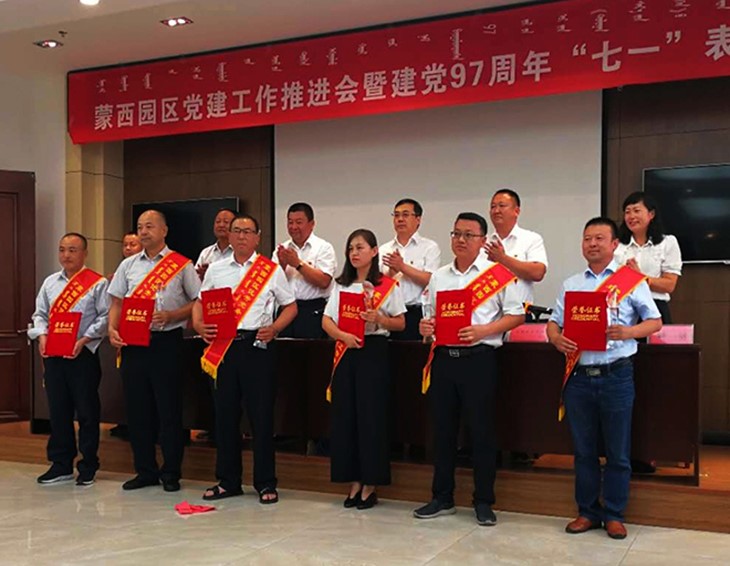 7月1日下午,蒙西園區黨工委組織召開“蒙西園區黨建工作推進會暨建黨97周年七一表彰大會”,熱烈慶祝中國共產黨成立97周年,同時表彰了一批在黨建活動中為園區發展做出突出貢獻的先進集體和個人。其中我公司鄂爾多斯君正黨總支獲得“非公企業黨建建設突出單位”、蒙西冶煉黨支部獲得“先進基層黨組織”、蒙西化工黨支部書記王學權獲得蒙西園區“優秀黨務工作者”榮譽稱號。