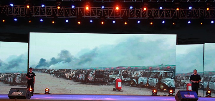 晚會共12個節目,主看臺座無虛席,小品引起市民們的陣陣笑聲,精彩的歌舞演出讓小朋友們都跟著跳了起來,其中讓大家印象最深刻的是烏達化工王楊和蒙西發電黨東帶來的《那些再也沒有回來的兄弟》,現場大屏幕播放著消防英雄的畫面,觀眾一度沉浸在感動、悲傷的氣氛中。“消防員的節目挺好的,我都想哭了。”現場一對情侶談論這個節目時如此說道,一些演職人員的親朋好友們也都詢問著歌曲的名字,有的甚至提出要一份背景視頻資料……