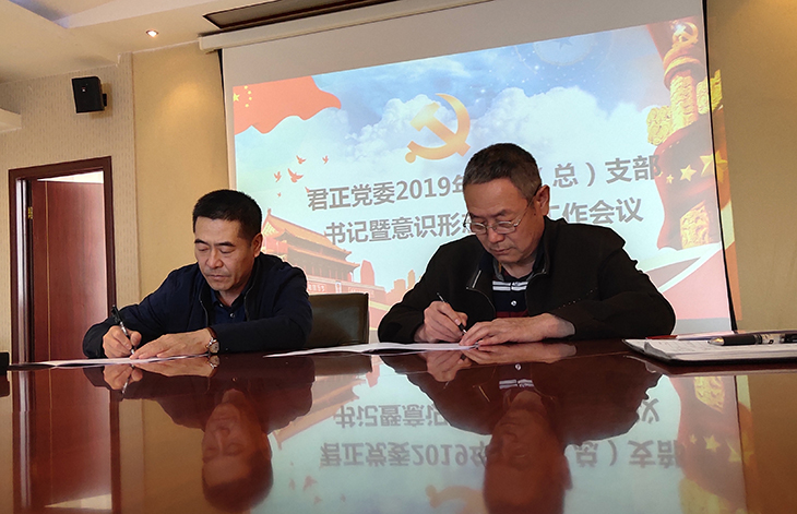 在莊重肅穆的氛圍中,齊書記與各(總)支書記簽訂了意識形態安全工作責任狀,進一步落實了責任主體。