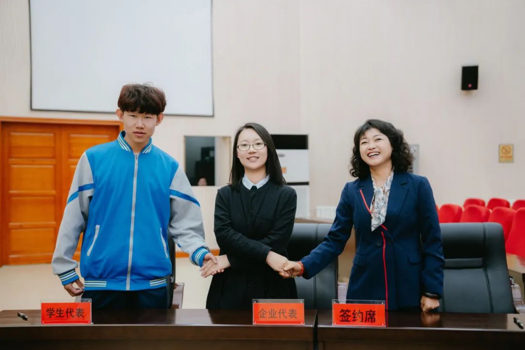 人力資源部總經理康曉敏代表企業與學校和工匠班學生代表簽訂了三方協議,為“準員工”發放了印有身份象征的筆記本,希望他們能夠在這個本上記下自己的所學、所思、所想、所得,也希望兩年后能夠在君正廠區見到大家的身影。