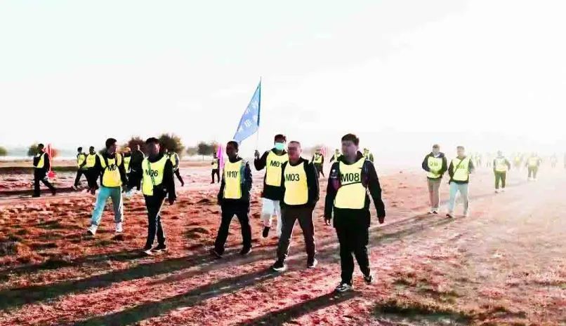 到達起點后,經過簡短的熱身運動,徒步活動正式開始。隊員們沿著預先設定的路線,踏上了這段充滿挑戰和樂趣的旅程。本次活動路線既有平坦的公路,也有泥濘的石子路和戈壁灘,考驗著大家的耐力和體力。