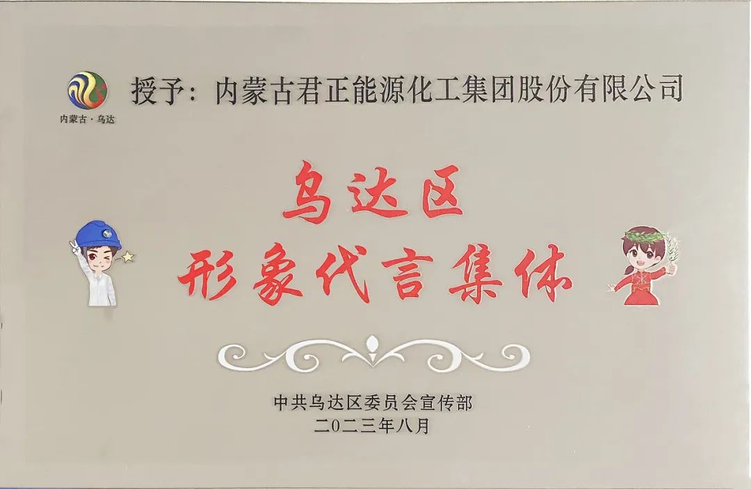 寒冬雖至,暖意卻來,12月19日,君正集團正式接到了烏達區委宣傳部頒發的“烏達區形象代言集體”榮譽牌匾,標志著本次從上半年開始的評選活動畫上了圓滿的句號。
