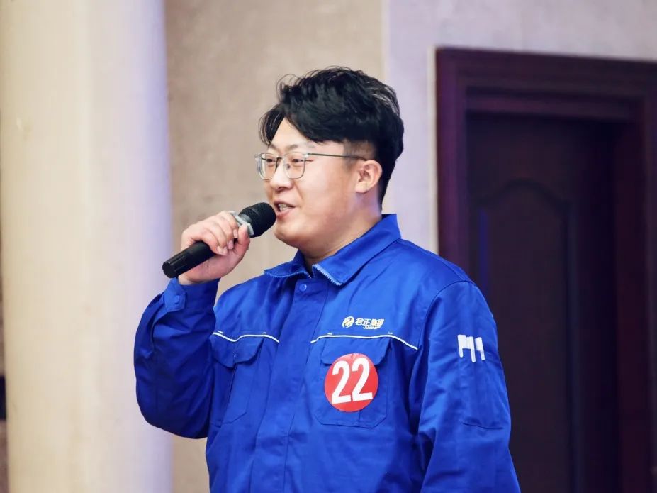 很感謝君正搭建這樣的一個平臺,讓我有機會鍛煉自己、挑戰自我。今天我演講的題目是: 懂感恩,盡職責,與君同行。